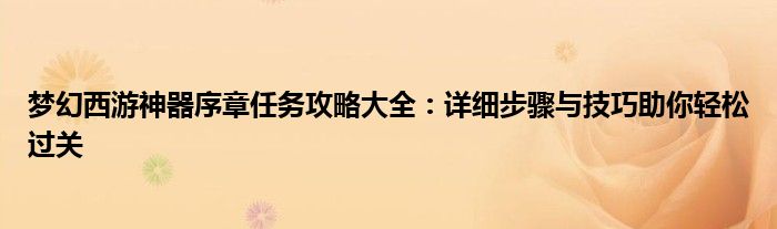 梦幻西游神器序章任务攻略大全:详细步骤与技巧助你轻松过关